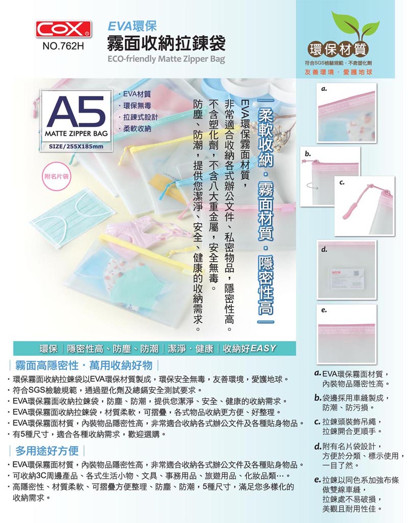 產品名稱 A5_EVA環保霧面收納拉鏈袋