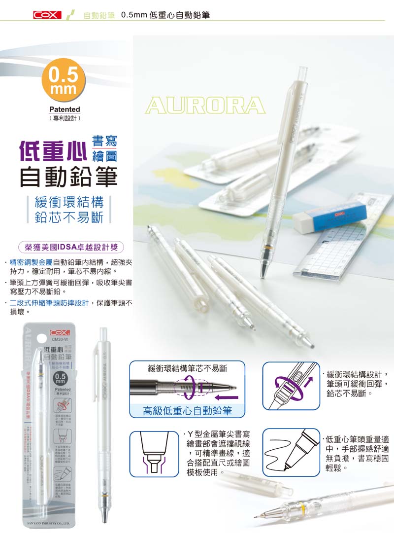 產品介紹 > 自動鉛筆系列 > CM20_0.5mm低重心自動鉛筆
